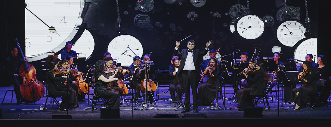 А что насчет оркестра без дирижёра? В произведении «Әлқисса» Нургисы Тлендиева дирижёр, кавалер ордена «Құрмет» Руслан Баймурзин отложил палочку и взял в руки домбру, а оркестр продолжил играть безупречно. В этот момент маэстро оказался внутри музыки как исполнитель и одновременно вёл её, но уже без единого жеста.