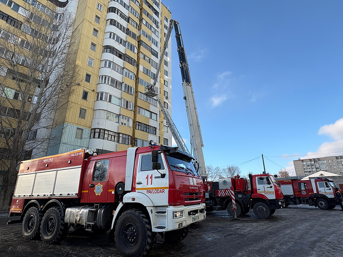 Пожарные Павлодара тушили условный пожар в многоэтажном доме. По замыслу пожарно-тактических учений, возгорание произошло в одной из квартир на верхних этажах. К месту происшествия оперативно направили силы и средства гарнизона. Пожарные подразделения провели разведку, развернули технику, организовали эвакуацию жильцов и спасение условно пострадавших.
