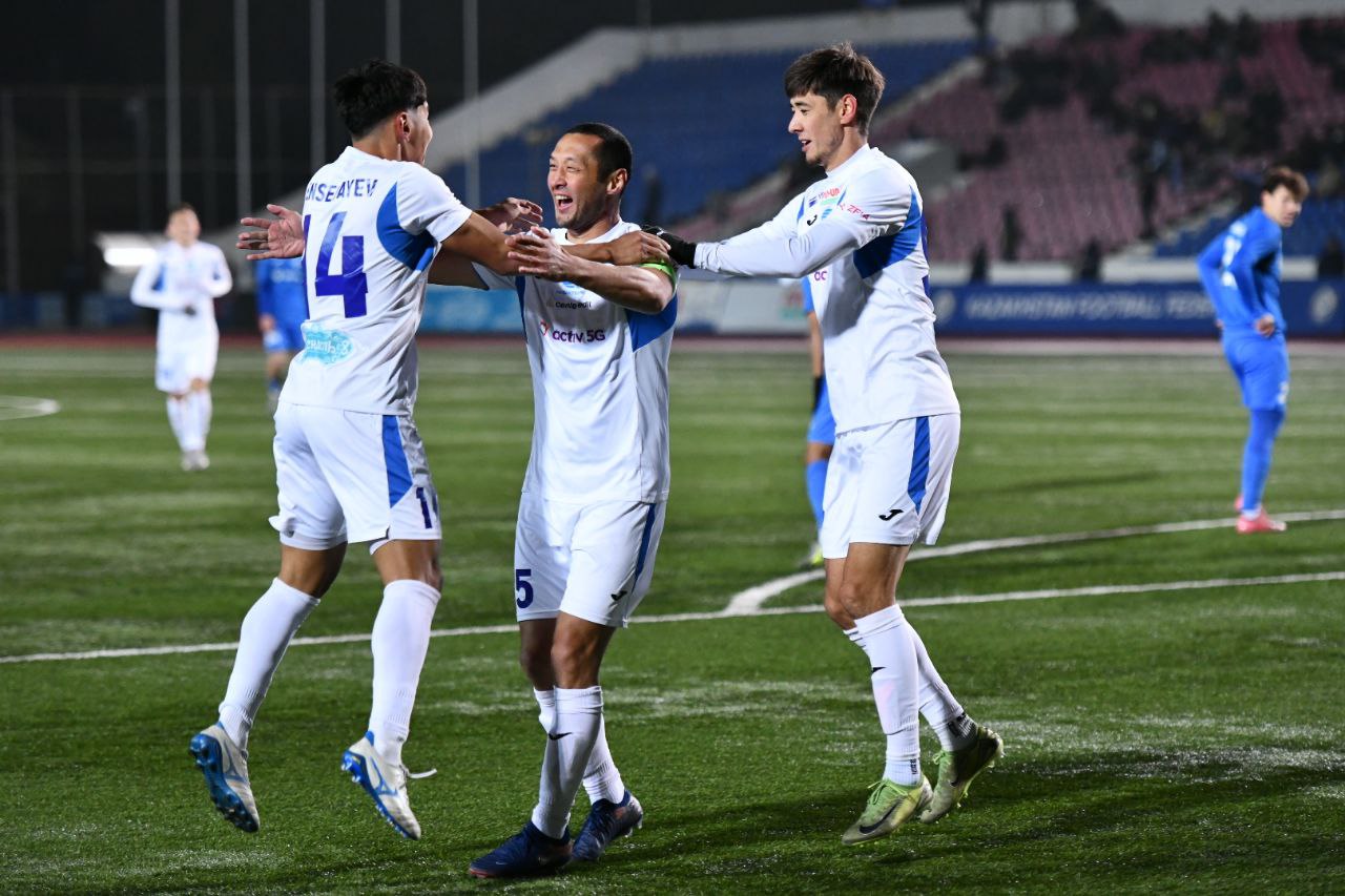 Через две минуты, под конец первого тайма, Аскар Сатышев (№15) с подачи Нургайни Бурибаева (№8) с нерабочей правой ноги замкнул атаку ударом головой. На перерыв команды ушли со счётом 2:1.