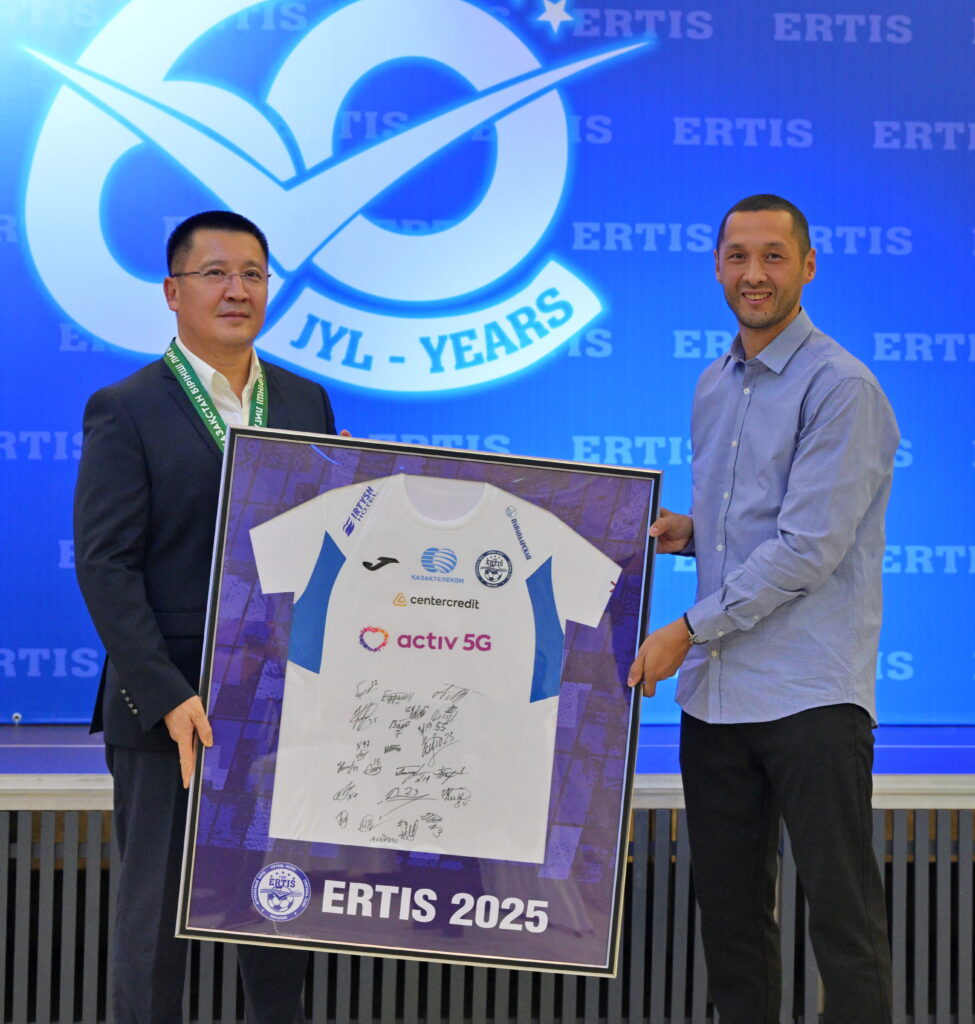На торжественной церемонии аким области вручил клубу премиальный сертификат и выразил благодарность капитану команды Руслану Есимову за высокий профессионализм, лидерские качества и вклад в успех клуба. В знак признательности футболисты преподнесли Асаину Байханову памятную медаль и игровую футболку сезона 2025 года, символизирующую единство и благодарность за поддержку.